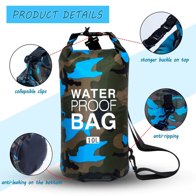 - 3 sizes to choose from: 3 types of capacities made of waterproof bag can meet your different needs: 10L, 20L, 30L. It is very suitable for storing clothes, shoes, your camera, smartphones, electronics, towels, blankets, sleeping bag, etc.