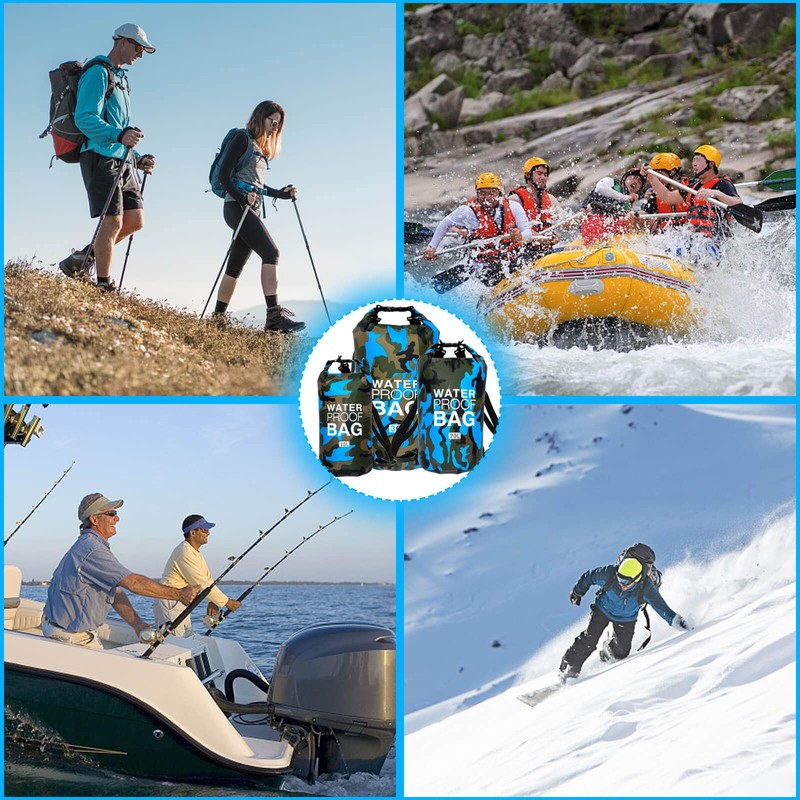 - Widely used: the waterproof bag is good for outdoor activities or water sports, such as boating, kayaking, sailing, canoeing, surfing, playing on the beach, swimming, rafting, camping, fishing, mountaineering, hiking, etc.