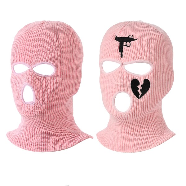 JSTHHTT 2 Packs 3 Hole Ski Mask Balaclava Unisex Full Face, Winter Knitted Balaclava, Unisex Windproof Warm Knitted Balaclava, for Men Women, Outdoor Sport Fishing Skiing Pink