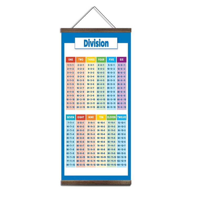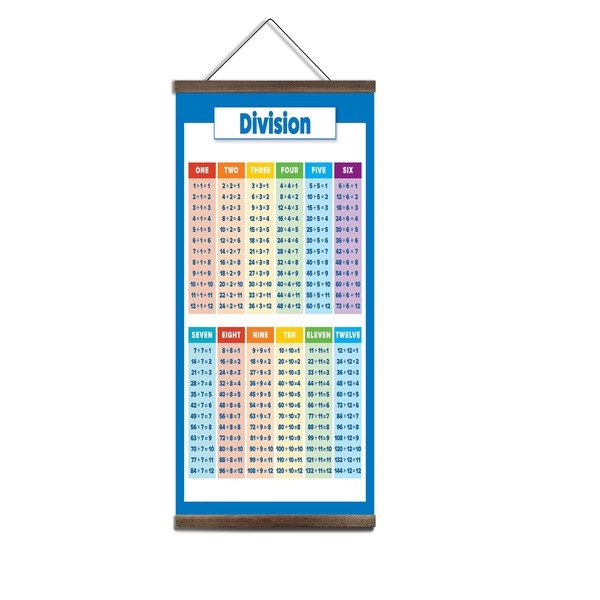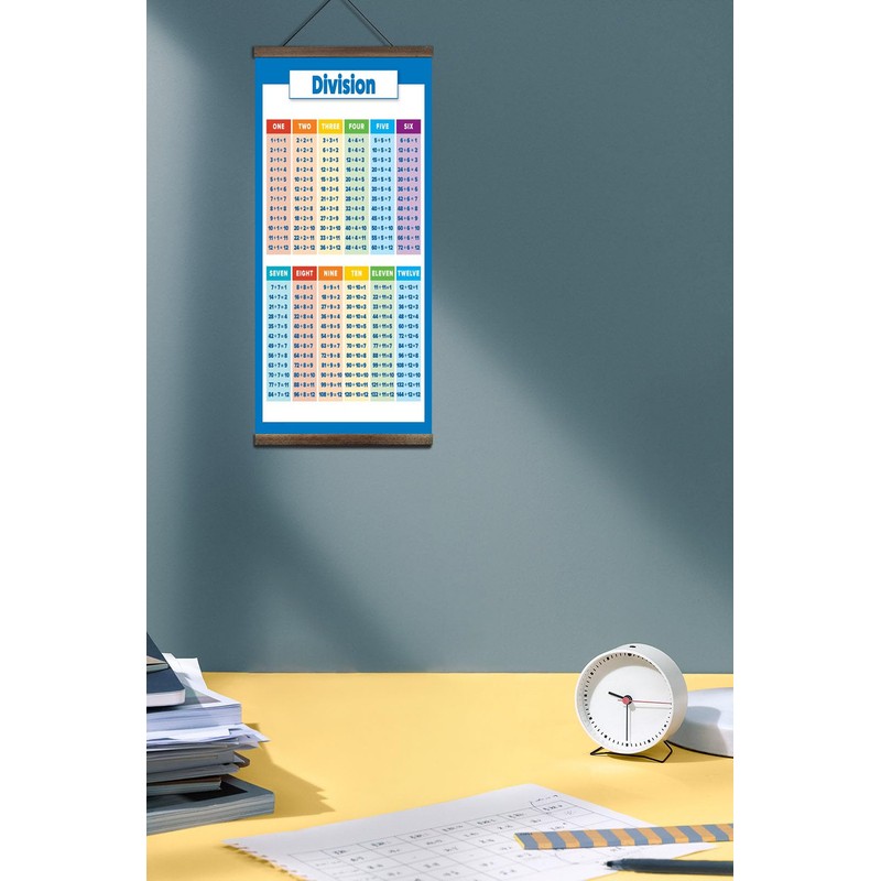 jszip Educational Division Chart Poster, 16x32 inches, Canvas Print with Wood Frame and Hanging Rope