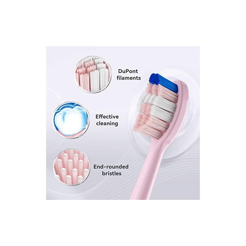 - Each of the toothbrush heads comes with a hygienic cap for easy storage and travel, protecting it from dust and bacteria