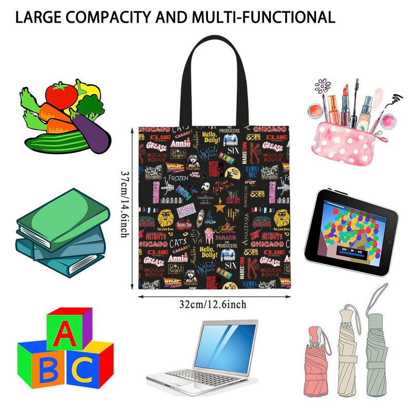 JTOUK Musical Theatre gift Broadway Musical Theater Shows Icons tote bag Broadway Enthusiast Gift (Musical Tote EU)