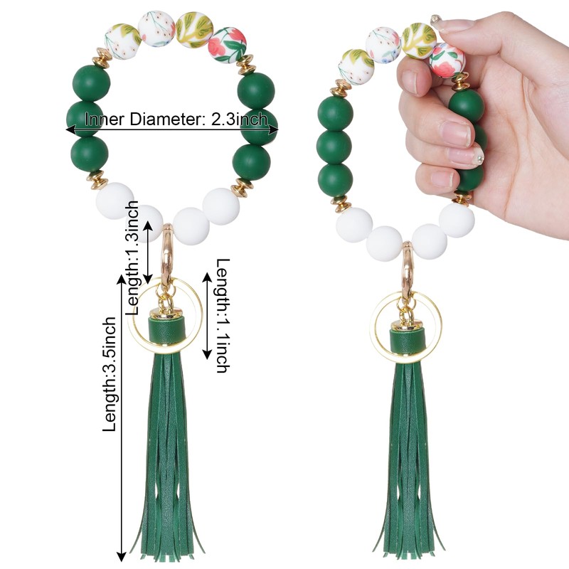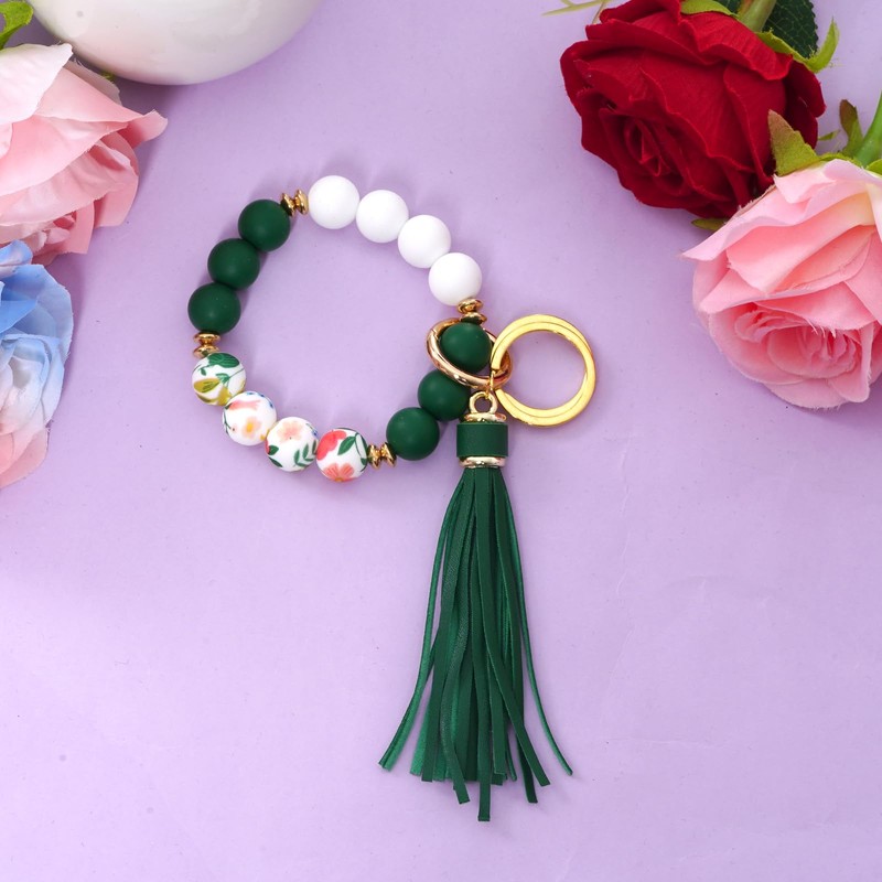JTYKUYR Wristlet Silicone Bangle Chains for Women, Beaded Keychain with Featuring Printed Patterns and Tassels
