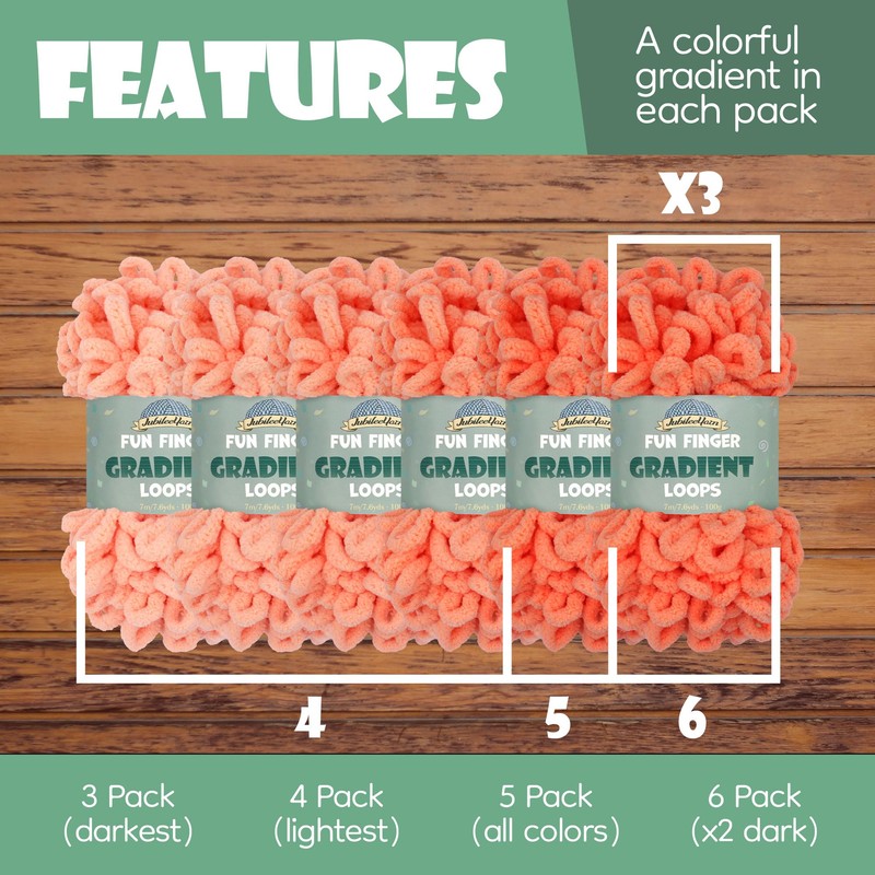 JubileeYarn Fun Finger Gradient Loops Yarn - 100g/Skein Jumbo Polyester - Ceres - 4 Skeins