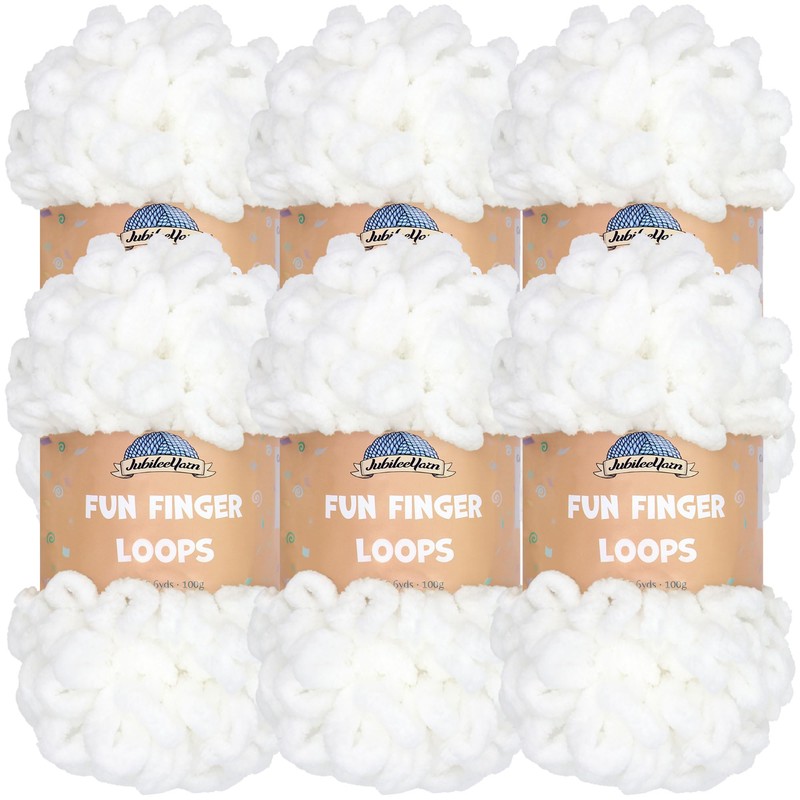 JubileeYarn Fun Finger Loops Yarn - Jumbo Polyester - 100g/Skein - White - 6 Skeins