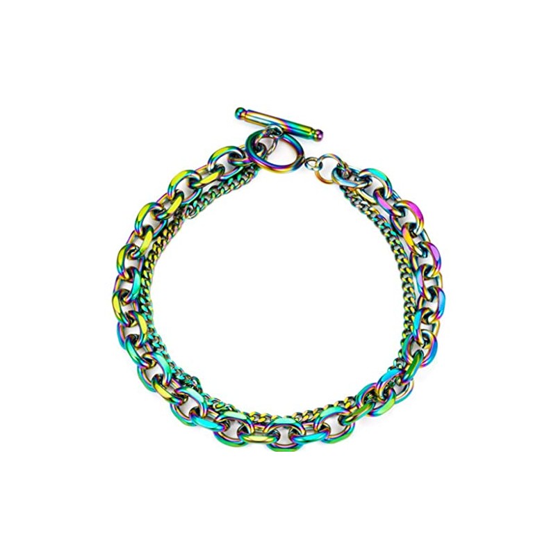 Jude Jewelers Stainless Steel Classic Plain Double Layer Wedding Statement Cocktail Party Strand Holiday Birthday Bracelet (Rainbow)