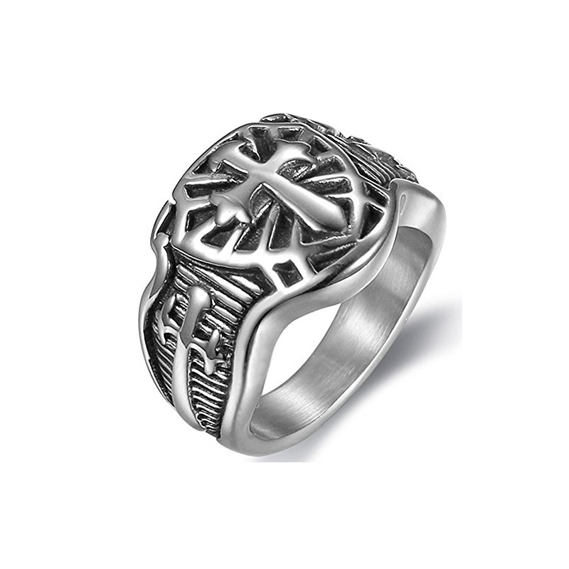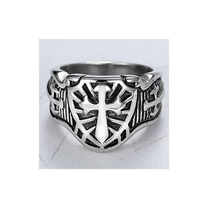 Jude Jewelers Stainless Steel Crusader Sword Cross Medieval Shield Ring, Metal, Cubic Zirconia