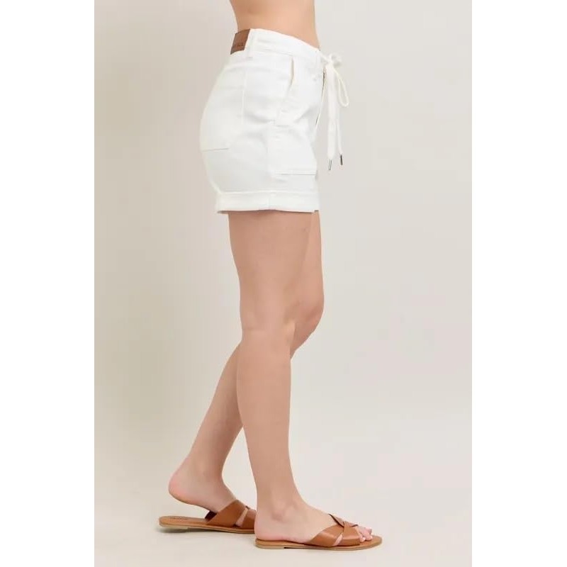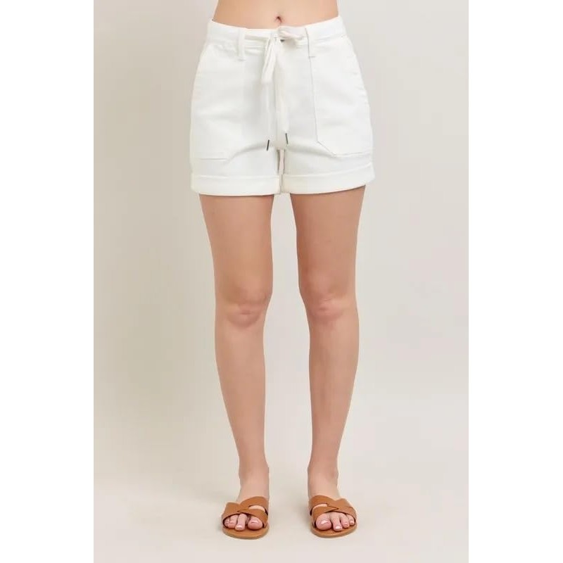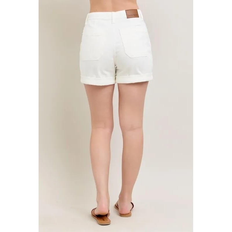Judy Blue High Rise Cuffed Denim Shorts (US, Alpha, Large, Regular, Regular, White)