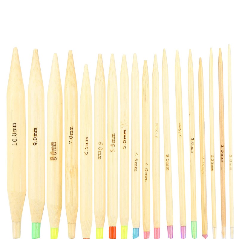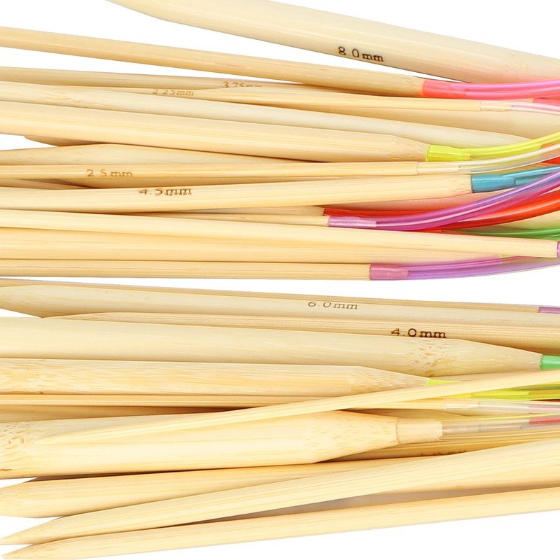 Juego de 18 Agujas de Tejer Circulares, Agujas de Crochet Circulares de Bambú de Doble Punta para Proyectos de Hilo de Tejer(60cm)