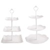 - Soporte para tartas de 3 niveles, pequeño y ligero; tamaño redondo: altura: 40 cm, diámetro de la bandeja: 25,9 cm, 20,3 cm, 16 cm (parte inferior/media/superior); tamaño cuadrado: altura: 37 cm, diámetro de la bandeja: 9,4/7,7/14,5 cm (parte inferior/medio/superior).