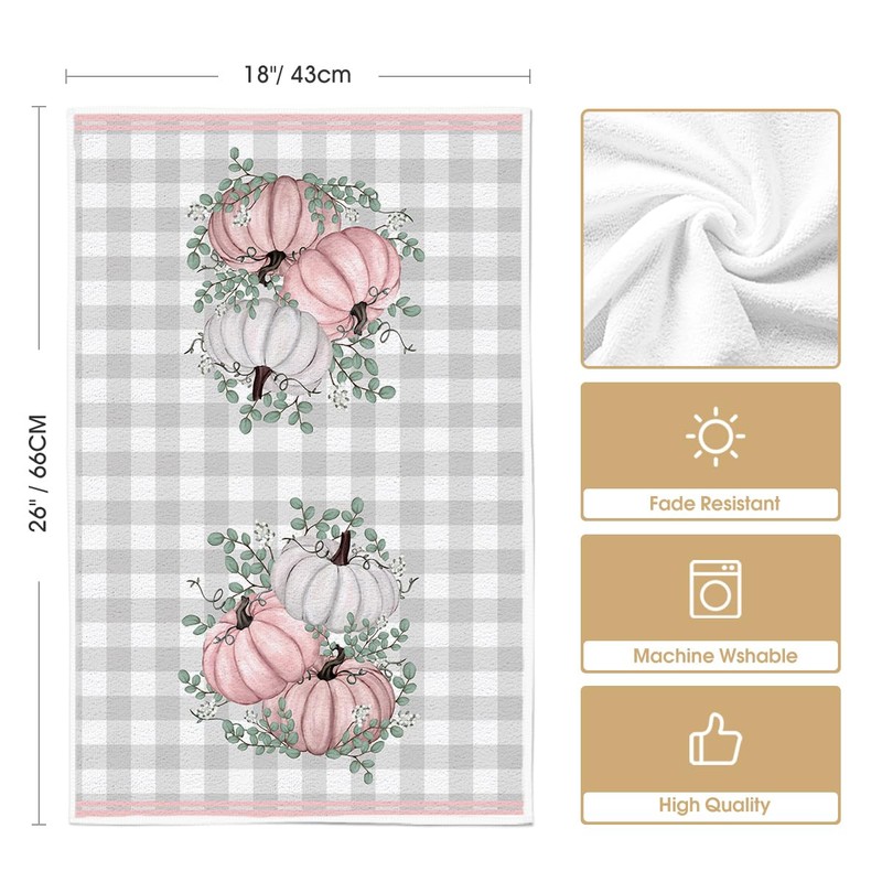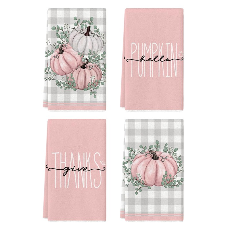 Juego de 4 toallas de cocina Artoid Mode de hojas de eucalipto rosa Hello Pumpkin Fall de 4 unidades