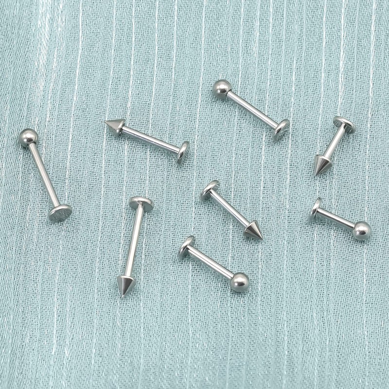 Juego de 8 piercings corporales de titanio de 16 g, para nariz, tabique, labio, cartílago, tragus, cejas, barra industrial, herradura, kit de piercings de 6 mm/8 mm/10 mm/12 mm, Titanio, Sin gemas.