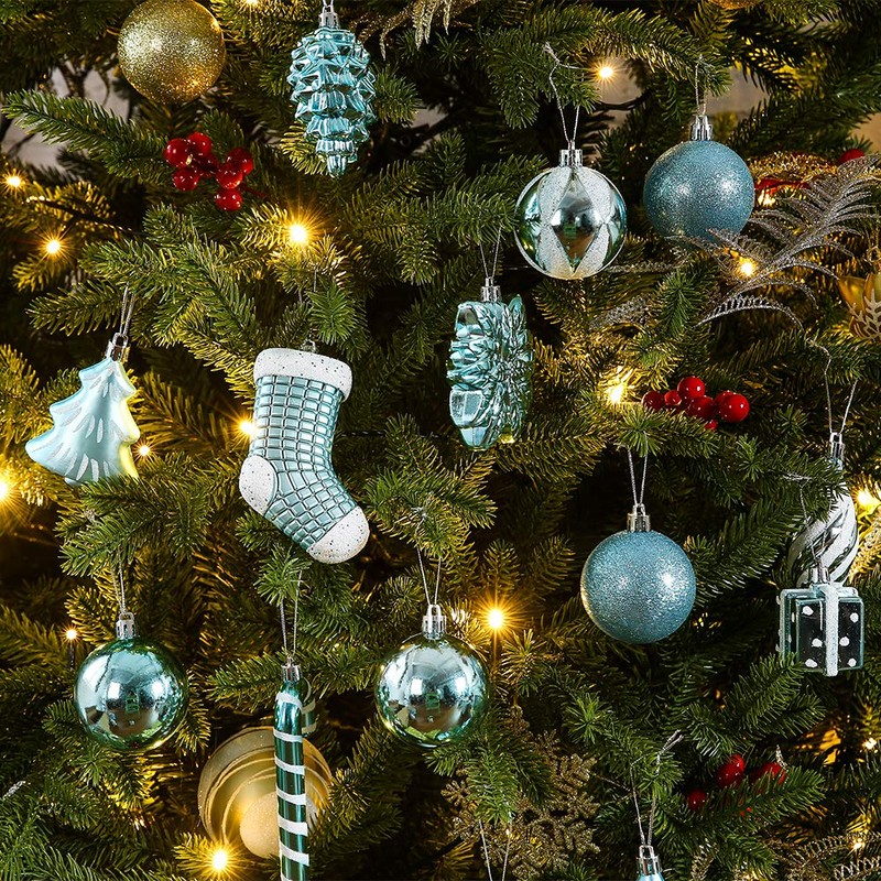 Juego de adornos de bolas de Navidad de 76 quilates para árbol de Navidad, inastillables decoraciones de árbol de Navidad con cajas de regalo reutilizables de ayuda a mano de Sattiyrch