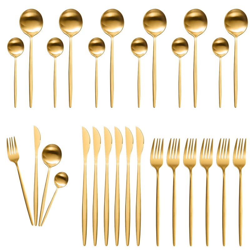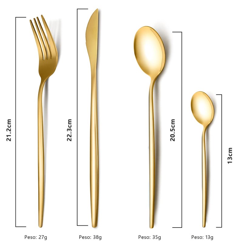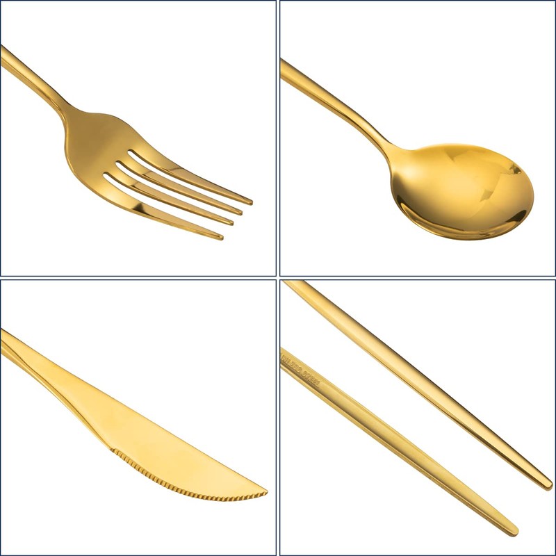 Juego De Cubiertos Para 6 Personas, Cubiertos Acero Inoxidable De 24 Piezas Incluye Cuchillos, Tenedores, Cucharas Espejo Pulido, Juego De Cubierto Para Cocina, Restaurante, Hotel , Apto Para El Lavavajillas (oro)