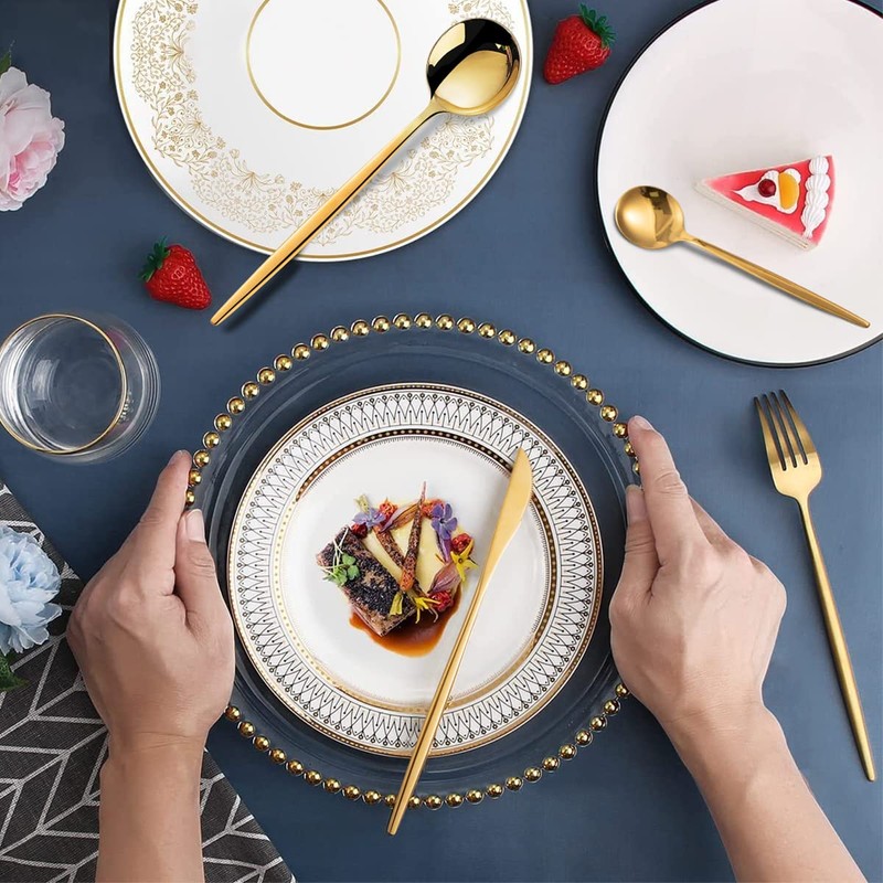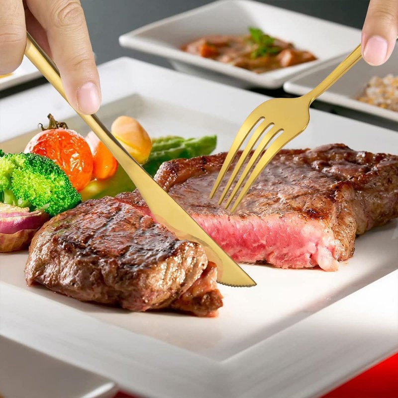 - 【Diseño Elegante para Uso Amplio】 Set de cuchillos y tenedores con apariencia simple sin decoración redundante;Este diseño clásico tiene un aspecto simple y limpio , lo suficientemente elegante como para combinar con toda su vajilla o vajilla existente.