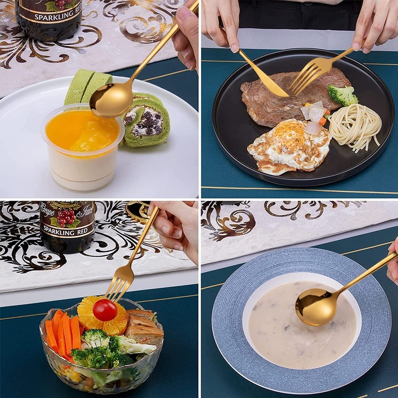 - 【Elección perfecta】Este juego es perfecto para el uso diario en el hogar, fiestas, reuniones, cenas familiares, cenas a la luz de las velas, banquetes, acción de gracias, barbacoas, bodas y otras ocasiones formales. También se puede utilizar en apartamentos, cabañas, casas, camping, hoteles, restaurantes, bistrós, etc.