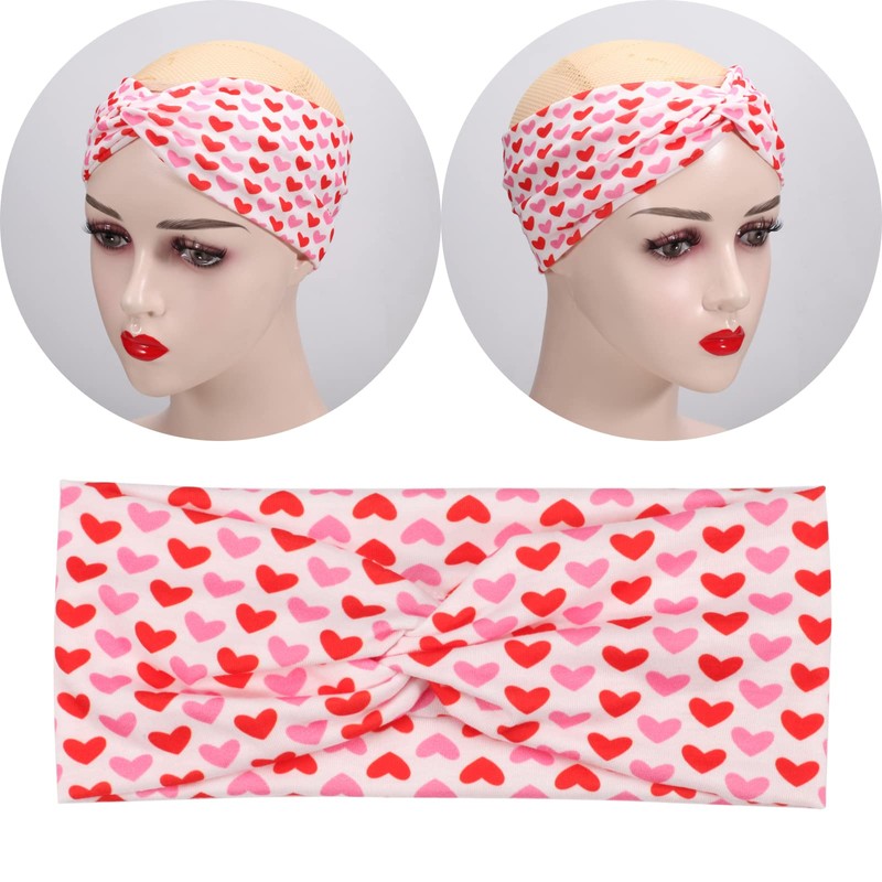 Juego de diademas anudadas para el día de San Valentín para mujer, turbante elástico estilo labios romántico, extra ancho, elástico, trenzado, cruzado, bandas para la cabeza, antideslizantes, estampado de corazón con rosa de tela gruesa para el pelo, par