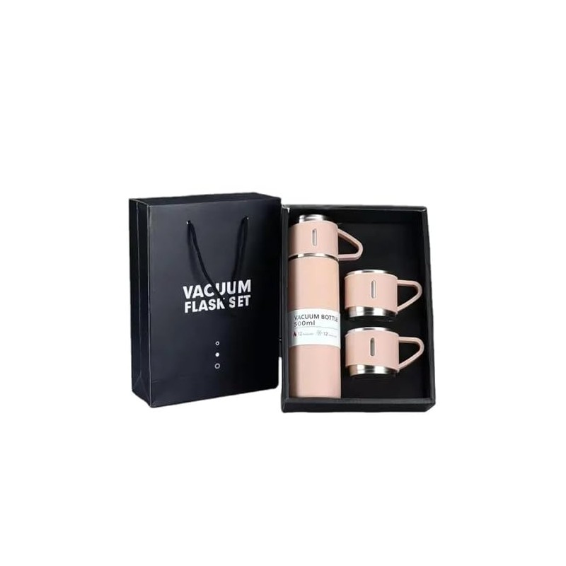 Juego de frascos al vacio, botella de agua aislada con 3 taza de regalo, botella de agua térmica para bebidas frías y calientes, botella de agua reutilizable de acero inoxidable, Vacuum flask set