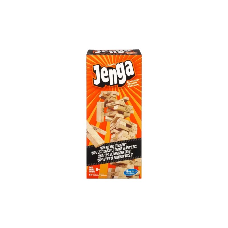 uego De Mesa Hasbro Gaming Jenga Clásico De Madera +6 Años. Es el juego de equilibrio y destreza ideal para todas las reuniones. El objetivo es mantener la calma y demostrar precisión para retirar los bloques de madera uno a uno sin derribar la torre.