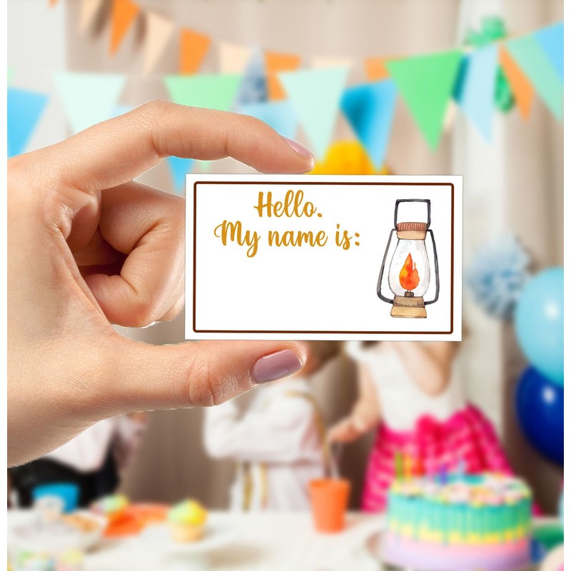 Juego de nombre de What's Your S'mores, juego de fiesta de S'mores, 1 letrero de juego y 30 calcomanías de nombre, juegos de cumpleaños para fiestas de niños, actividades de camping, fiesta de cumpleaños, diversión para adultos y niños