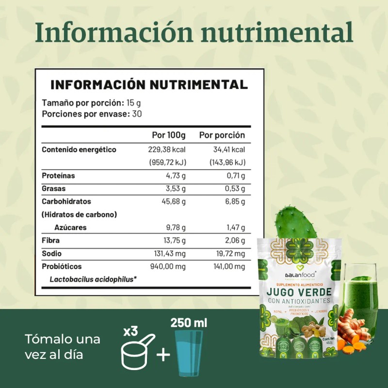 Jugo Verde Detox con Probióticos y Antioxidantes Sabor Natural con Nopal y Jengibre Apoya Digestión e Inmunidad Energizante y 100% Natural de Balanfood