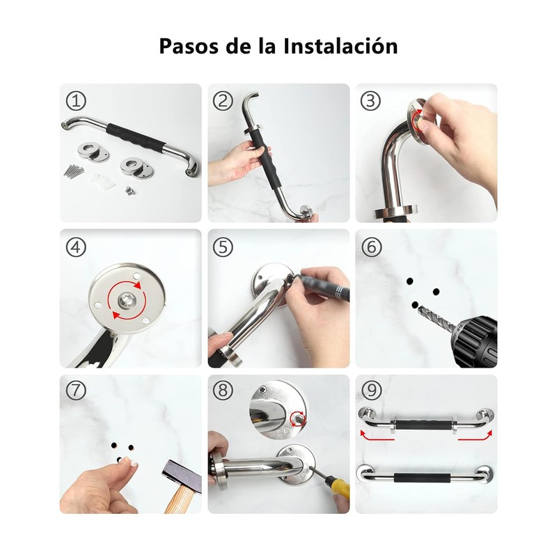 - 【FÁCIL INSTALACIÓN】: Nuestra barra de agarre blanca de 24 pulgadas es fácil de instalar y se puede montar de forma segura en cualquier pared de ducha o baño con los herrajes incluidos.