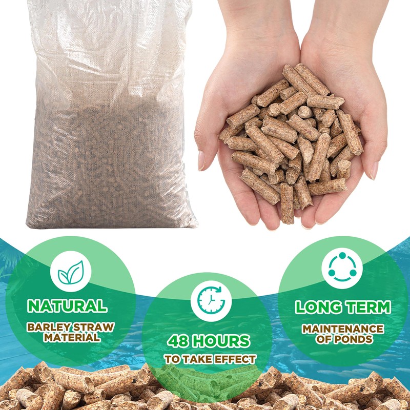 - Simplicity Meets Endurance: ease into maintenance with just 1.8 Kg of barley straw pellets per treatment for a standard 3, 000 gallon pond; Each application lasts up to about 6 weeks, while the generous 9 Kg package ensures your pond remains healthy 4 to 5 times a year