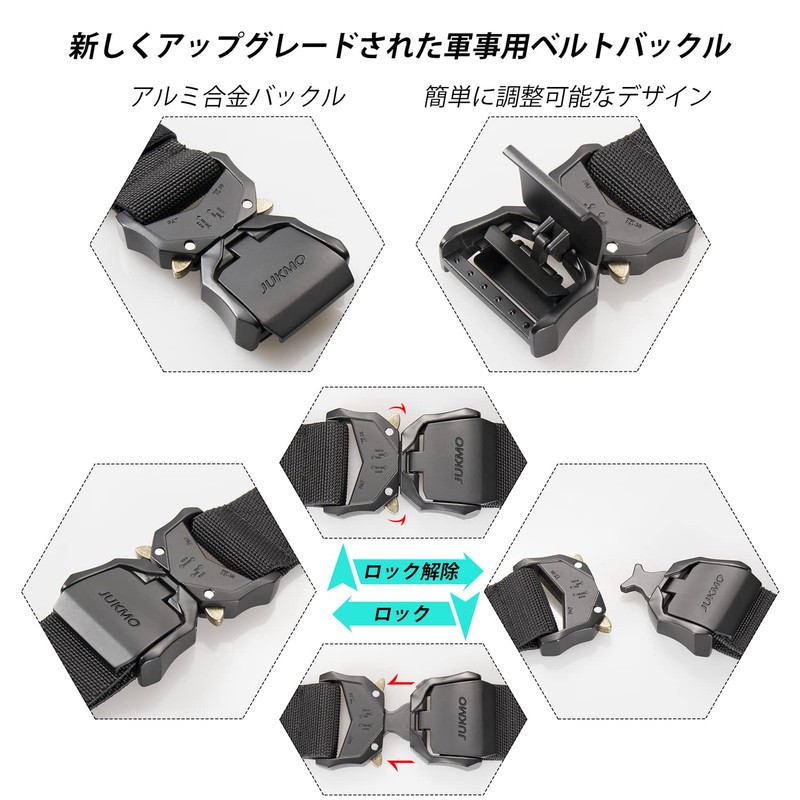 JUKMO Men's Work Belt, Tactical Belt, Military Belt, Quick Release Buckle Included, Black