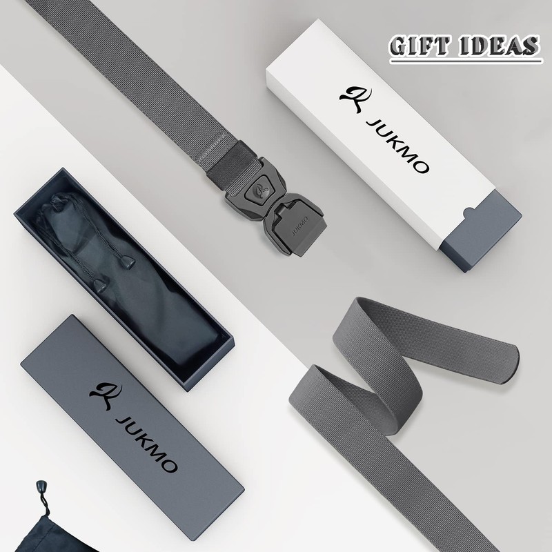 JUKMO Quick Release Tactical Belt, Military Work 1.5" Nylon Web Golf Belt with Heavy Duty Seatbelt Buckle, Grey, Small-for Waist 30"-36" (Length 45")