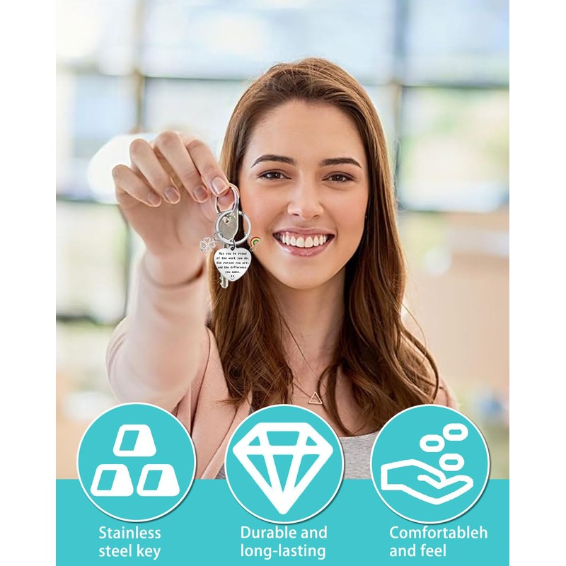 - Hochwertige Materialien: Der Schlüsselanhänger aus Edelstahl besteht aus sicherem und ungiftigem Edelstahlmaterial, der Schlüsselanhänger hat glatte Kanten und eine exquisite Verarbeitung, schützt die Haut vor Schäden, ist robust und langlebig, verblasst nicht, verformt sich nicht und rostet nicht, wodurch die Schönheit und Textur des Schlüsselanhängers erhalten bleibt