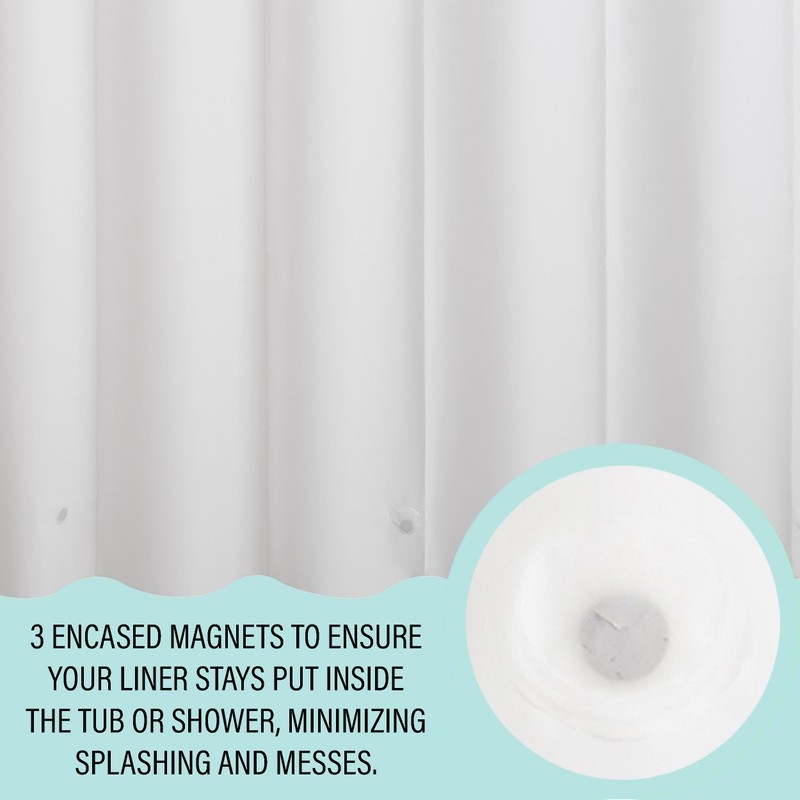 - RUST RESISTANT GROMMET HOLES - each liner has 12 metal grommet holes to accommodate standard or decorative shower curtain hooks. The metal grommet holes promote easier hanging and provide long-lasting strength