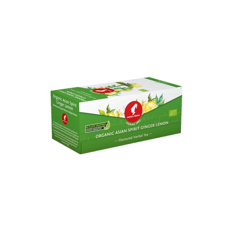 Julius Meinl Organic Asian Spirit Ginger Lemon Herbal Tea 25ct - Plastic Free Packaging & Biodegradeable Filter