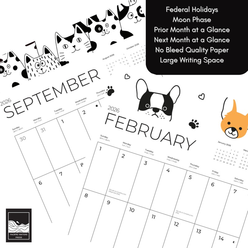 July 2025- December 2026 Dogs and Cats Mega Wall Calendar 18 Month | 12" x 24" Open | Giftable Large Grid Teacher Calendar 2026 | Thick & Sturdy Paper for Organizing & Planning | Pacific Waters Press (Dogs and Cats on Repeat)