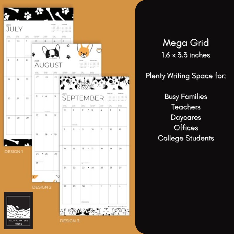 - July 2025 - December 2026 Mega Grid Wall Calendar features a large, easy-to-read grid designed specifically for busy families, students, or teachers. With plenty of writing space for scheduling appointments, events, and activities, this calendar makes organization simple and stress-free. The fun, engaging patterns add a touch of personality and energy to each month, making planning a breeze. Perfect for keeping track of important dates and staying organized, this calendar will bring structure, fun, and clarity to your home, school, or office throughout the year.