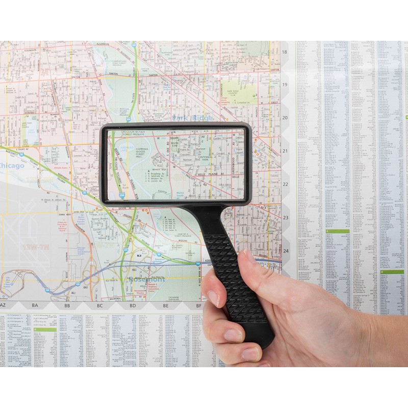 Jumbo Rectangular Handheld Magnifying Glass (3X Magnification) – Scratch Resistant Glass Lens - Large Horizontal Viewing Area