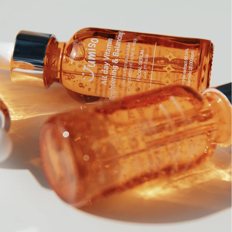 El JUMISO All Day Vitamin Facial Serum es un suero facial coreano formulado con una potente combinación de vitaminas A, B, D, E, K y C, diseñadas para iluminar, equilibrar y revitalizar la piel.