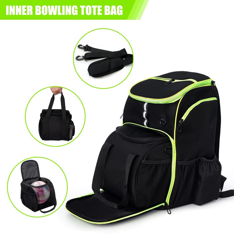 - COMPLETE PROTECTION: Both the bowling backpack and bowling tote bag have all-around padding for extra protection. The inner bowling tote bag can be used separately or with the included shoulder strap for crossbody use. Suitable for various outdoor activities, it can serve as a basketball backpack or be used for baseball and softball