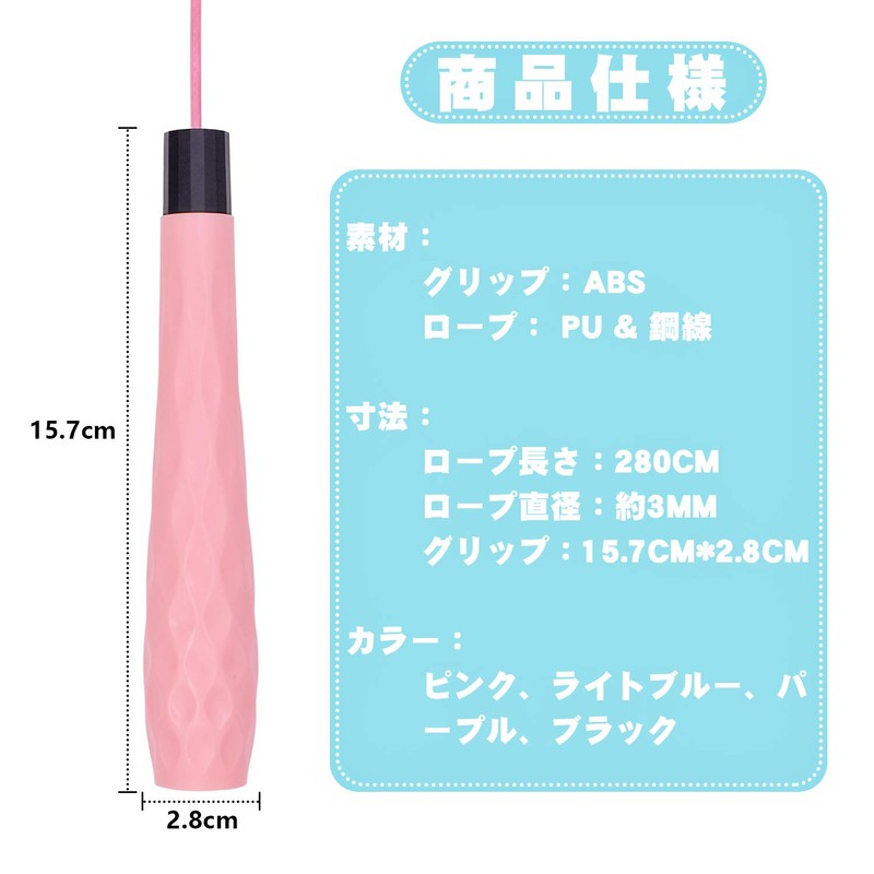 - Size: Total length of rope 100.6 inches (280 cm) (suitable for both children and adults. Rope Diameter: about 3mm Grip Size: 6.2 x 1.1 inches (15.7 x 2.8 cm)