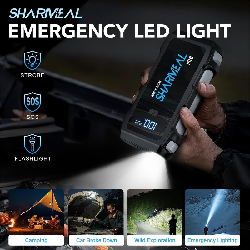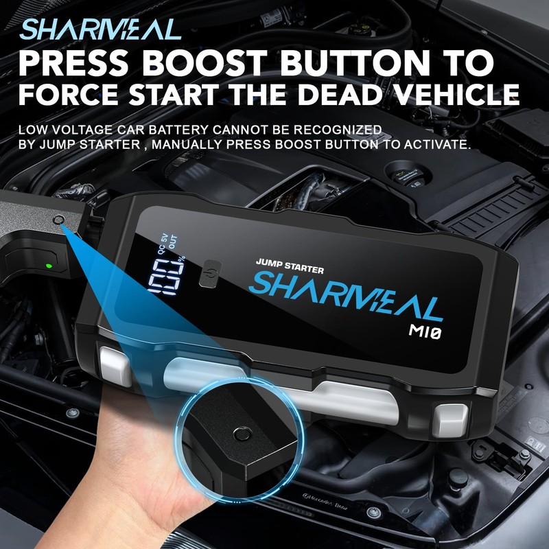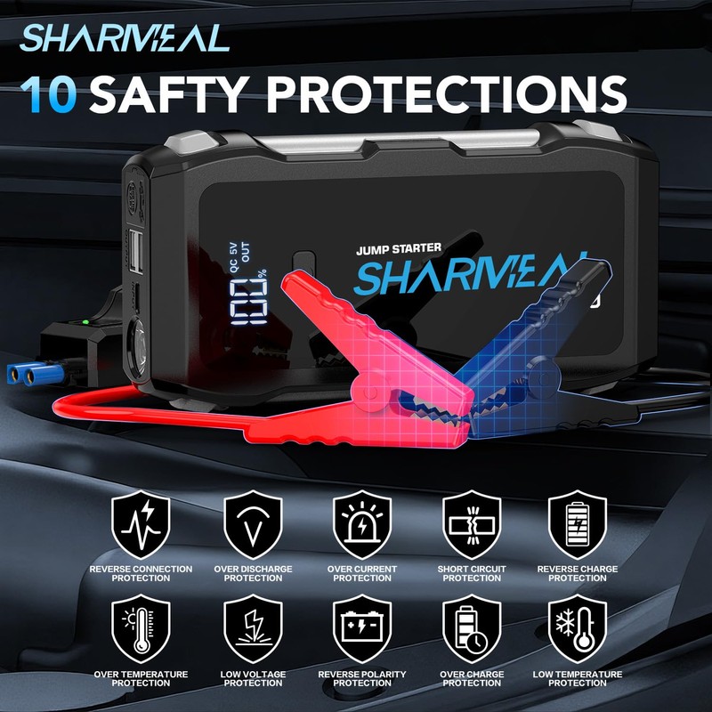 - 【Start Dead Batteries】The Sharmeal car battery jump starter power pack with 5500A peak, safely start the 12V vehicles in seconds with this booster(up to 10.0L gasoline/9.0L diesel engines). It is suitable for cars, trucks, motorcycles, boats, rvs, tractors, snowmobiles, etc.