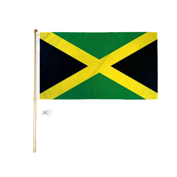 JumpingLight 5 Wood Flag Pole Kit Wall Mount Bracket with 3x5 Jamaica Country Polyester Flag - Quality Flags
