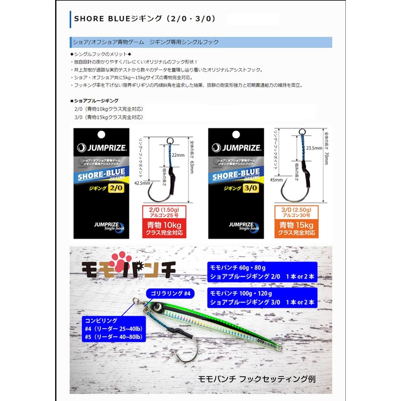 • Model: [For Jigging Only Single Hook, Shore Blue Jig 2/0]... Fully compatible with 22.0 lbs (10 kg) class! Compatible with Shore Blue Jigging to Offshore Also fits front assist sinking pencils. A single hook dedicated for jigging using a strong argon assist line