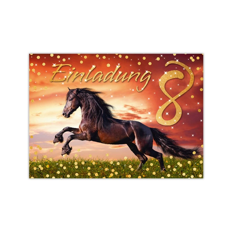 Junapack 12 Invitation Cards for 8th Children's Birthday Eighth Birthday Girl Horse Brown with 12 Envelopes, 12 Bags / Natural, 12 Stickers