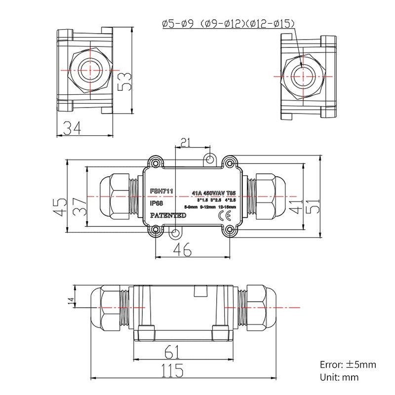 - 2.Strong waterproof :The junction box is IP68 high-level waterproof class / Moisture-proof/Dust-proof/ anti-UV 2 Way Plastic Terminal, it can be installed horizontal and vertical as an external junction box.