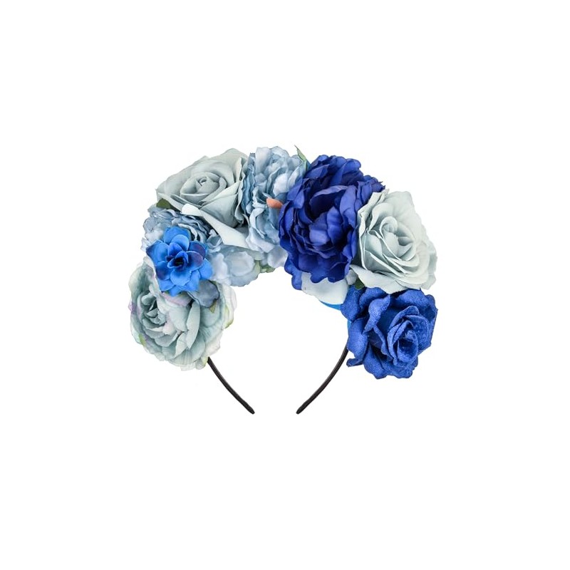 June Bloomy Women Mexican Flower Crown Headband Dia de los muertos Day of the dead Headpiece Party Costume(Blue)