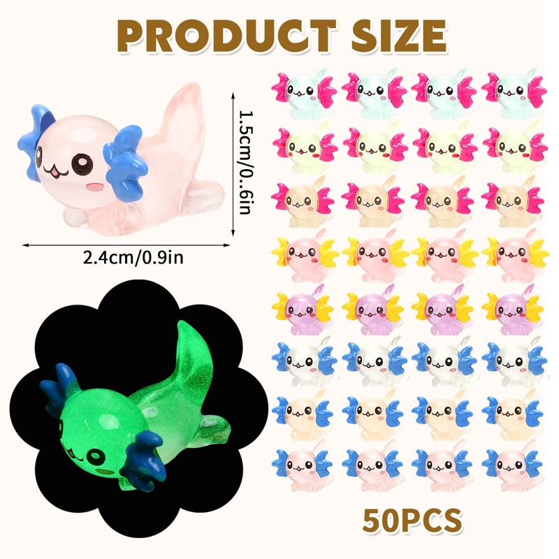 JUNEBRUSHS 50 Pcs Mini Resin Axolotls Glow in The Dark Axolotl Miniature Figurine Luminous Ornament for DIY Crafts Garden Landscape Dollhouses Party Decorations