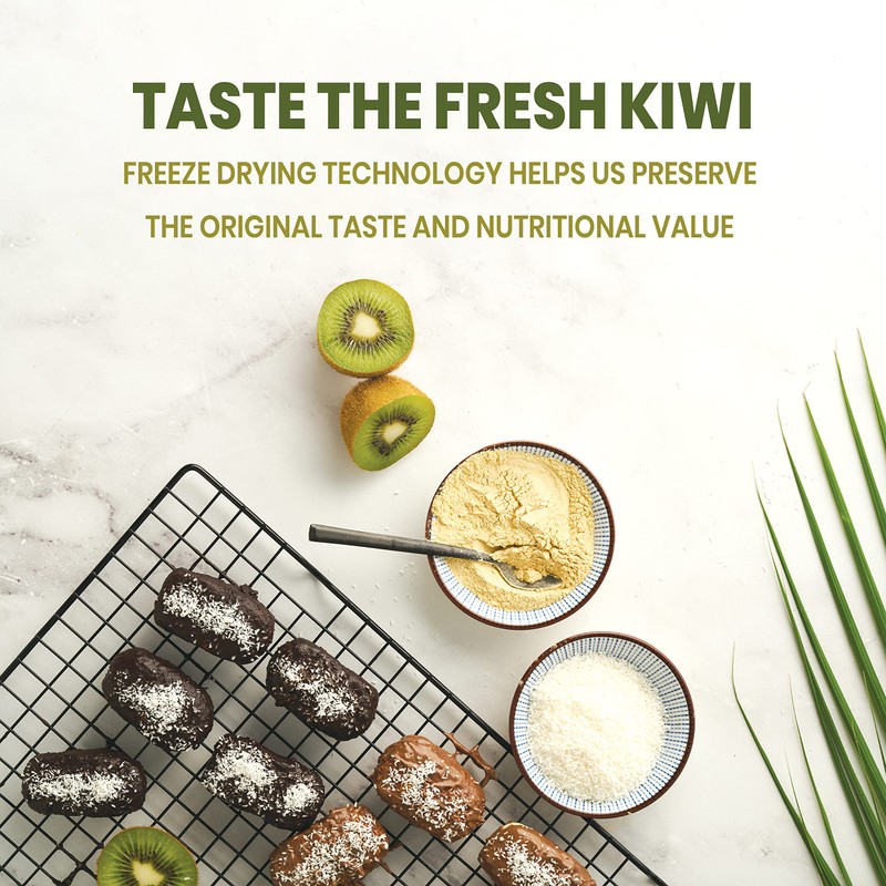- EASY TO USE - Our kiwi powder mixes easily in any of your recipes - smoothies, shakes, cakes, porridge, and more. Adding only a spoonful of the kiwi flavoring boosts your dish with nutrients and color. Just like fresh fruit, our fruit powder does not dissolve in water.
