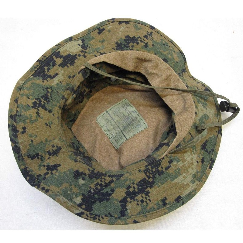 This Is the Made To Military Specs Marine Corp Marpat Digital Camouflage Boonie Busch Hat. The Digital Camouflage Boonie hat has a wide brim with webbing. Twill pixel camouflage cloth is actual Marine Corp issue. The camouflage material has been chemically treated to help reduce infrared signatures from radars, etc. The Digital Camo Boonie hat has the embroidered USMC Eagle, Globe, and Anchor. The Military Spec Digital Camo Boonie hat has a terry cloth sweatband and lining. The Digital Camo Boonie Hat is 50% cotton, 50% nylon twill and is made in the USA by one of the current military manufacturers. Don't be fooled by impostors OR IMPORTS, THIS ONE IS MADE IN THE USA.