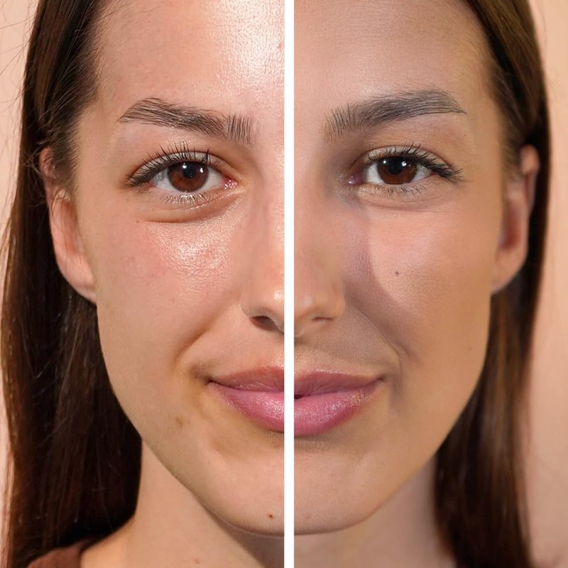 - Find your colour: best determine your tint on the side jaw and neck, as these areas are less reddened than on the face. If in doubt, choose a tone lighter, as the pigments may darken slightly.