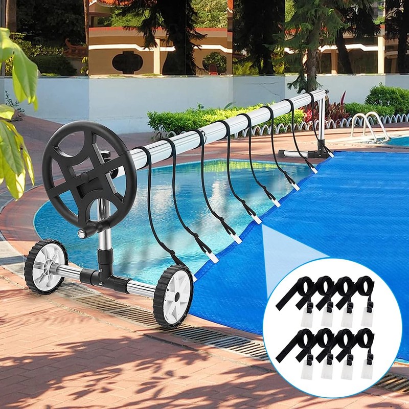 Junhui Universal Mounting Tape for Pool Roller, Set of 8 Fastening Straps and Clips and Buckles for Pool Foil Solar Film, Retaining Straps for Pool Cover