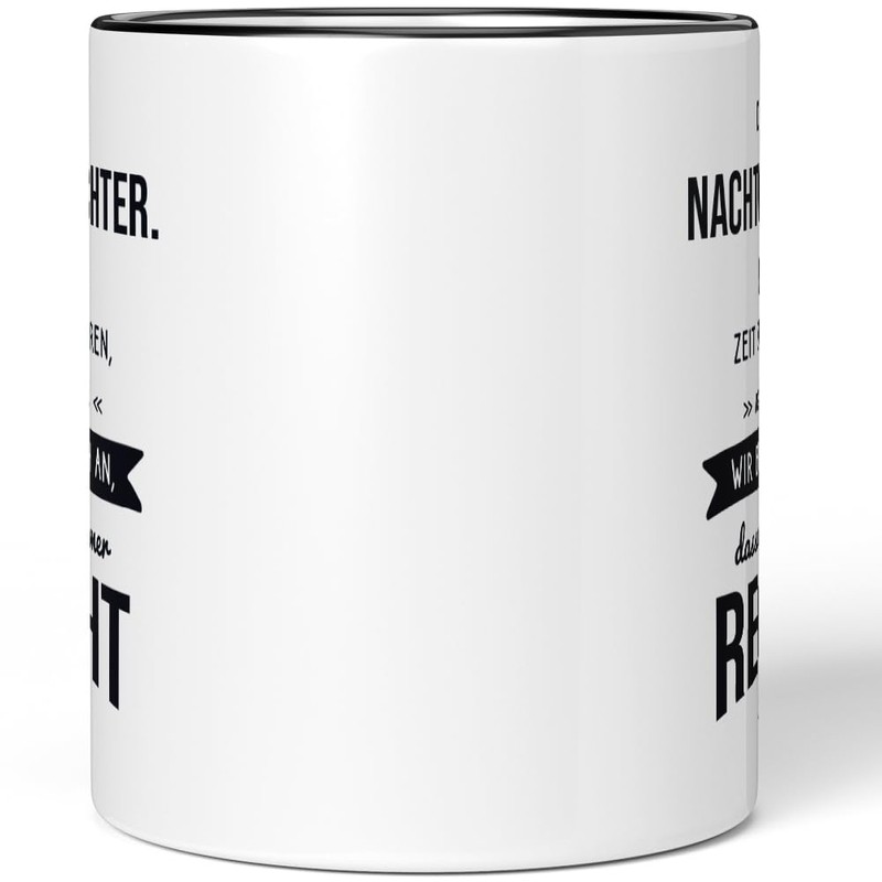 - JUNIWORDS Keramiktasse Ich bin Nachtwächter. Um Zeit zu sparen, nehmen wir einfach an, dass ich immer recht habe mit farbigen Henkel & Tassenrand in der von Ihnen gewählten Farbe